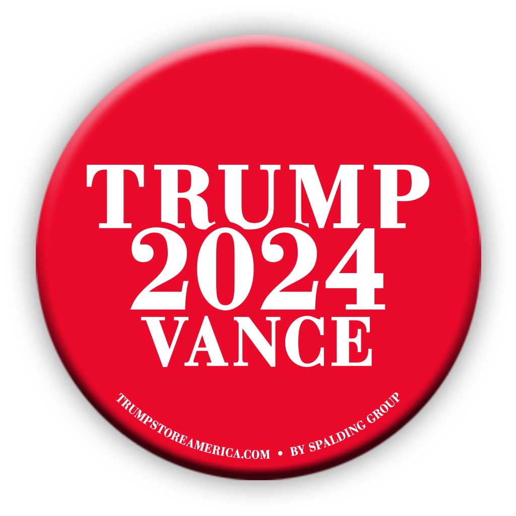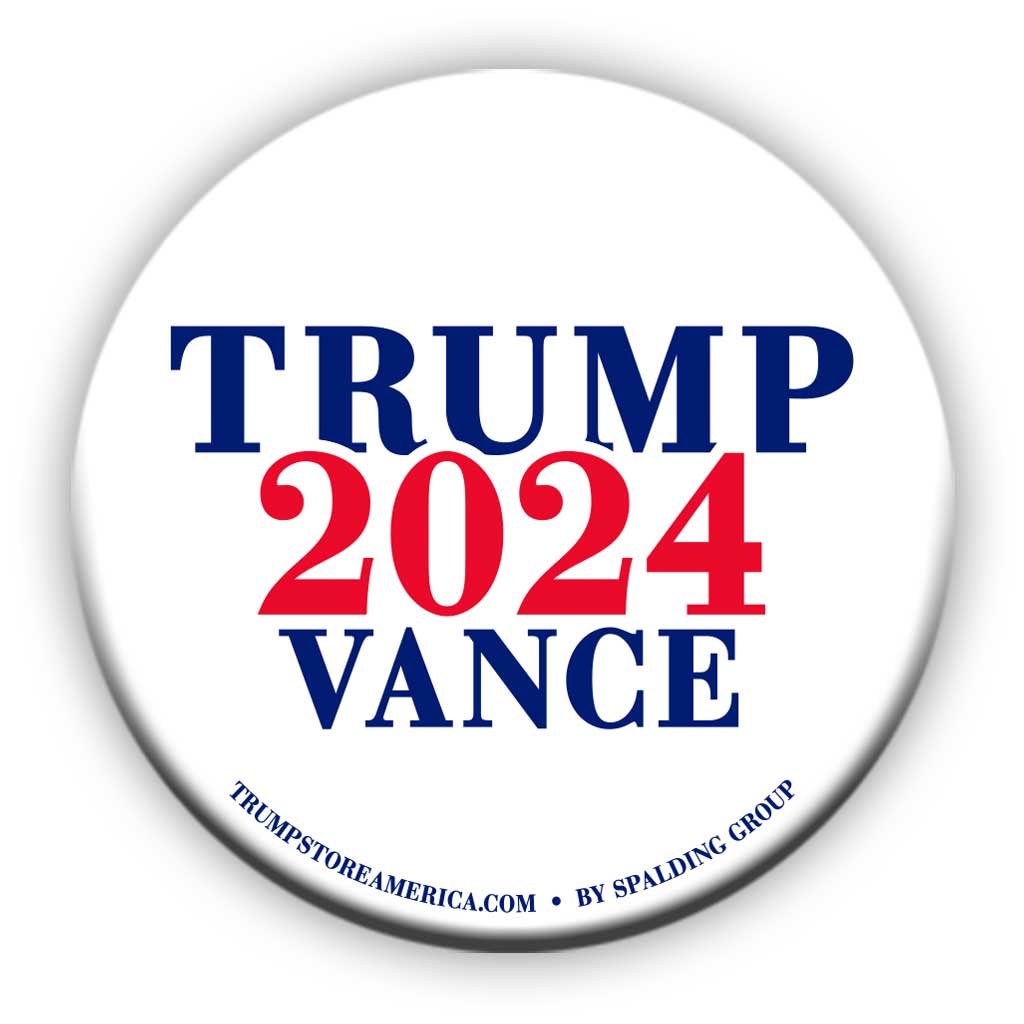 The Winning Ticket! Show you're with Trump and Vance with this 2in square button. In Black, Red, White and Navy.